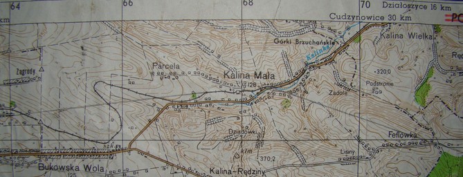 Mapa z 1965r .Przebieg torów kolejki przez Kalinę Mała
