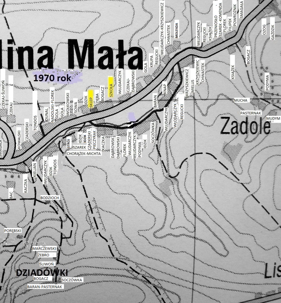 do Map Kaliny Małej (rok 1970)