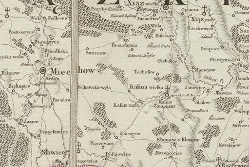 Fragment mapy z 1792 roku, na której zaznaczona jest Kalina Mała. Pełna nazwa mapy brzmi:
