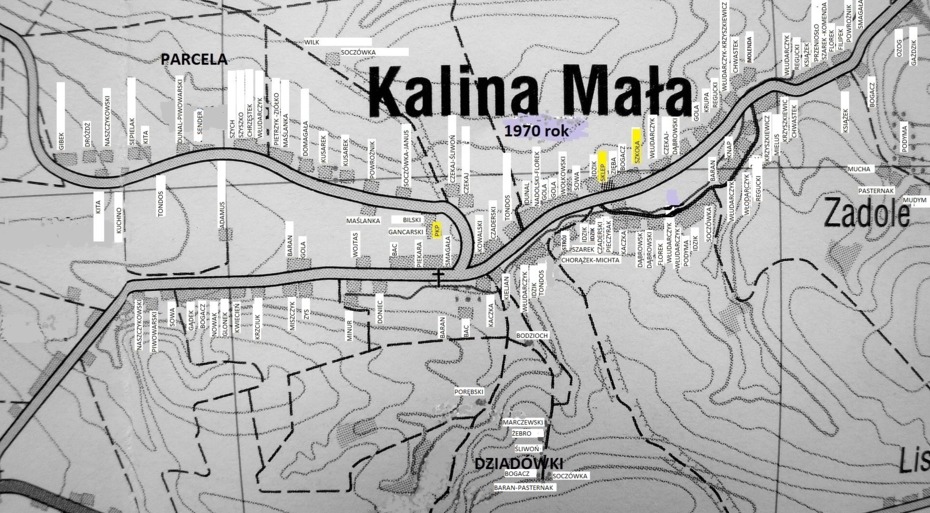 Zaznacza Pan jedno z gospodarstw : Chorążek – Michta. Podobnie można by zapisać: Florek – Nadolski. Chyba że planuje pan podobną inną mapę Kaliny z zaznaczeniem gospodarzy z wcześniejszego pokolenia? Na przykład z roku 1939?