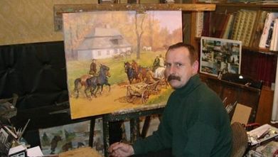 . 1) Marek Hołda urodził się 25 kwietnia 1956 roku. Mieszka i maluje w Miechowie. Preferuje tradycyjne malarstwo sztalugowe. Najczęstszymi motywami jego prac są: architektura i scenki rodzajowe z Miechowszczyzny. Maluje zarówno pejzaże, jak i sceny batalistyczne.