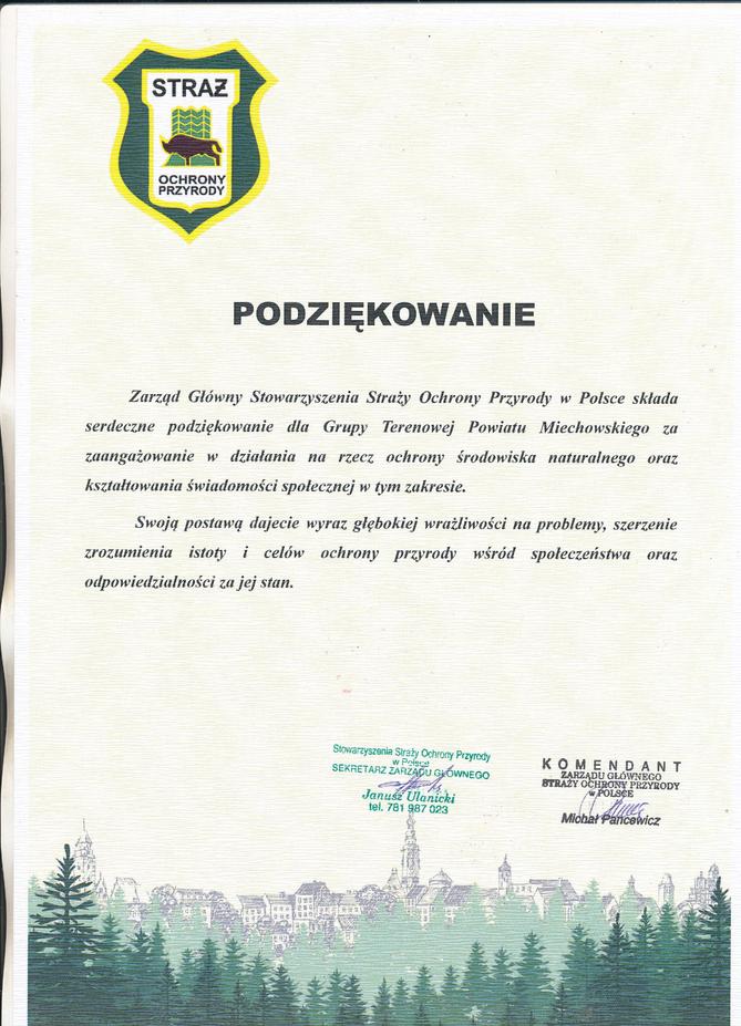 Dziękujemy Panu Burmistrzowi GiM Miechów Dariuszowi Marczewskiemu że poparł naszą inicjatywę i doprowadził z nami sprawę do końca, Referatowi Ochrony Środowiska z Iwoną Dróżdż na czele, Straży Miejskiej w Miechowie.